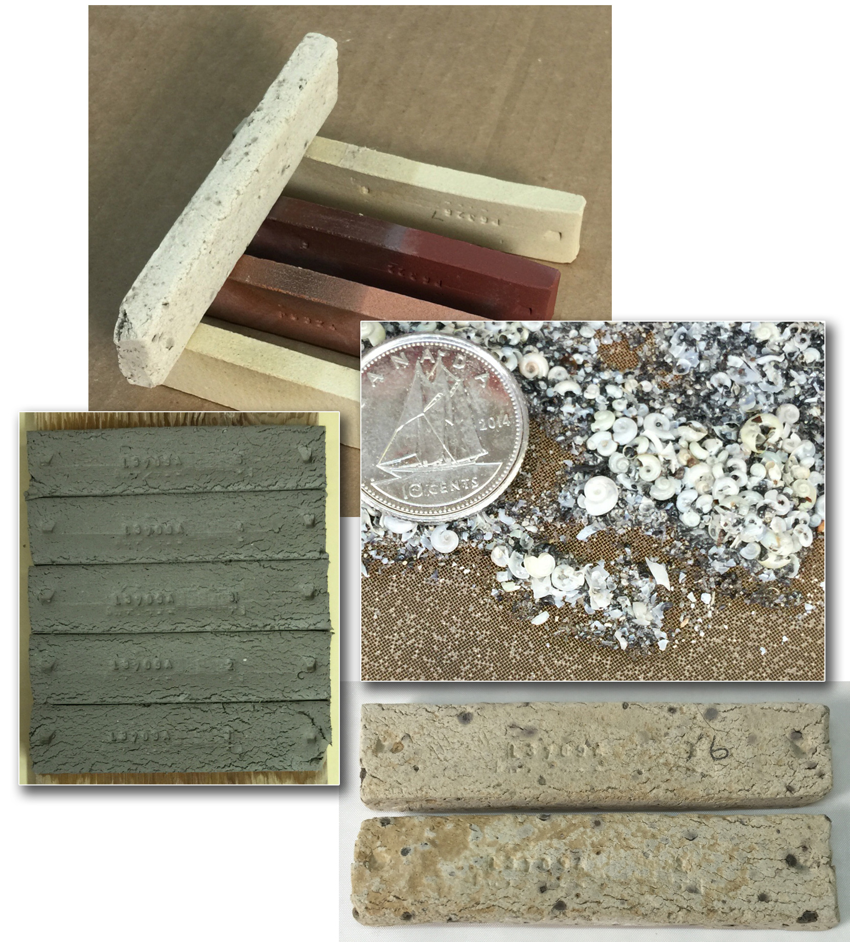 The giveaway of its marine origin is the tiny shells found on the sieve. The Cretaceous Sea once connected the Arctic Ocean with the Gulf of Mexico, covering the great plains of North America. Sedimentation left this deposit of Diatomaceous earth in central Alberta, Canada. This sample contains enough clay that I was able to slurry it up, dewater it on a plaster bat and then prepare SHAB test bars to try it at five temperatures. At cone 10 (bottom right) the porosity is 62%! And the LOI is 32% (others can go as high at 50%). Why? Raw diatomaceous earth contains physically bound interlayer water, it leaves by ~100–300 °C. It also contains structural hydroxyl water (in clay minerals or hydrated silica phases). This “chemical water” burns off between ~400–700 °C. And, organic matter from ancient organic material from algae, plants, or soil contamination also burns out between ~300–800 °C (as CO₂ and other gases). Finally, the carbonates (e.g. shells shown here) decompose around 700–900 °C, releasing CO₂. That alone can cause a big weight loss.