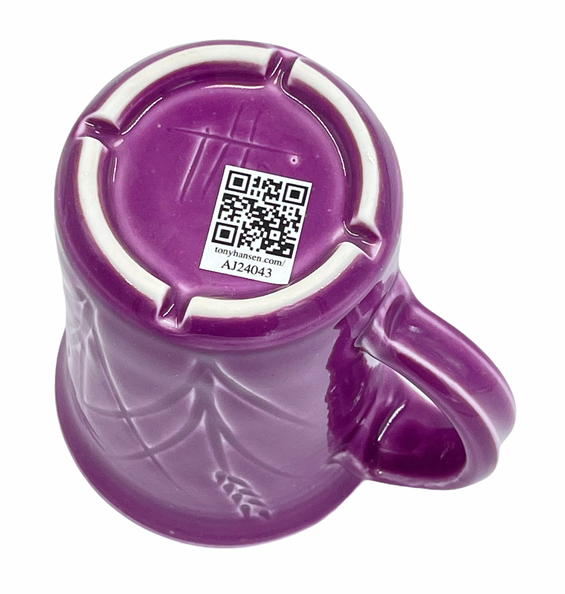 These mugs are intended to demonstrate the techniques, recipes and materials I promote on this site. My audience is potters, hobbyists and manufacturers. Each mug described maintains its own permanent page here with detailed physical description as well as information on every detail of how it was made. Since each has links into many areas of this site that provide more detail, researching just one mug could take hours! The "AJxxxx" serial number on any can be searched here.