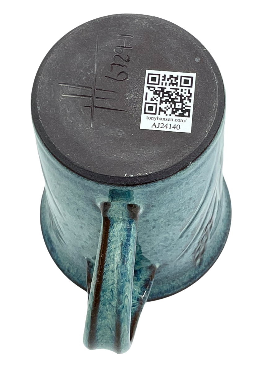 These mugs are intended to demonstrate the techniques, recipes and materials I promote on this site. My audience is potters, hobbyists and manufacturers. Each mug described maintains its own permanent page here with detailed physical description as well as information on every detail of how it was made. Since each has links into many areas of this site that provide more detail, researching just one mug could take hours! The "AJxxxx" serial number on any can be searched here.