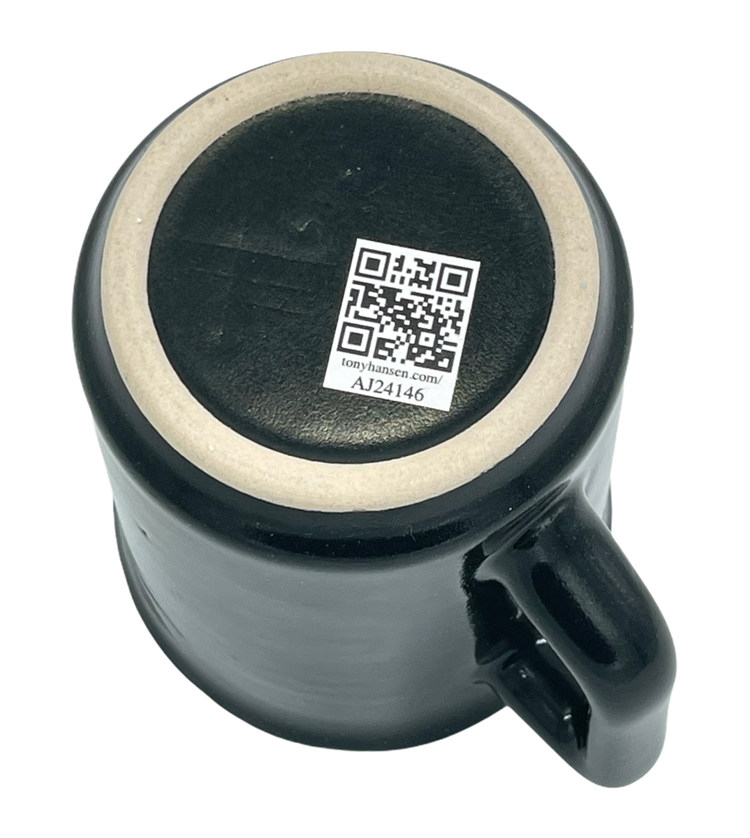 These mugs are intended to demonstrate the techniques, recipes and materials I promote on this site. My audience is potters, hobbyists and manufacturers. Each mug described maintains its own permanent page here with detailed physical description as well as information on every detail of how it was made. Since each has links into many areas of this site that provide more detail, researching just one mug could take hours! The "AJxxxx" serial number on any can be searched here.