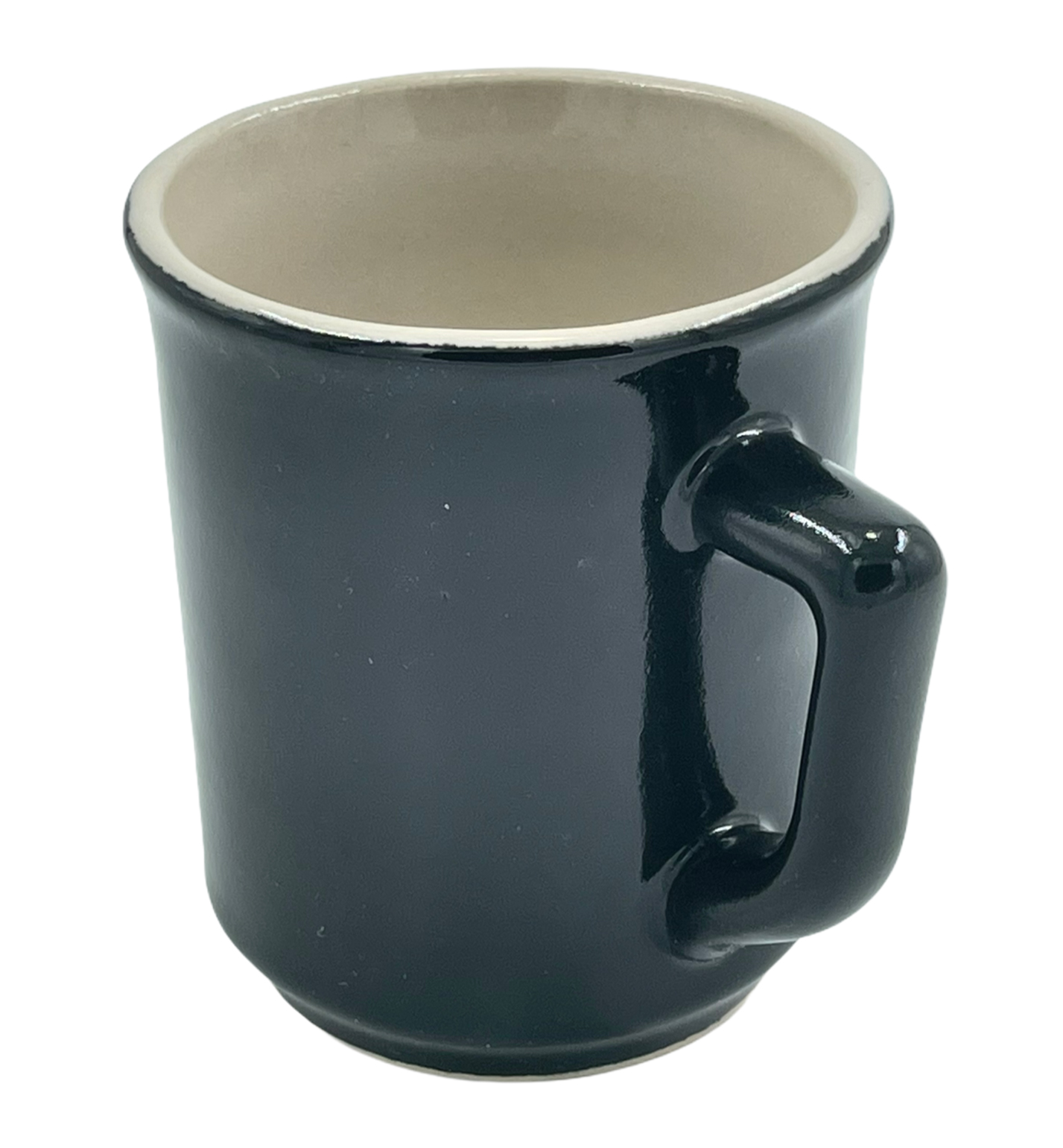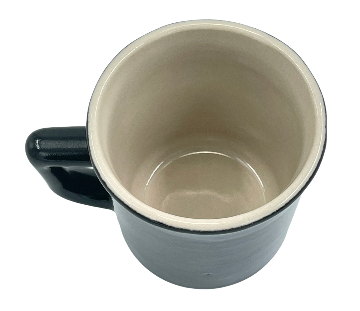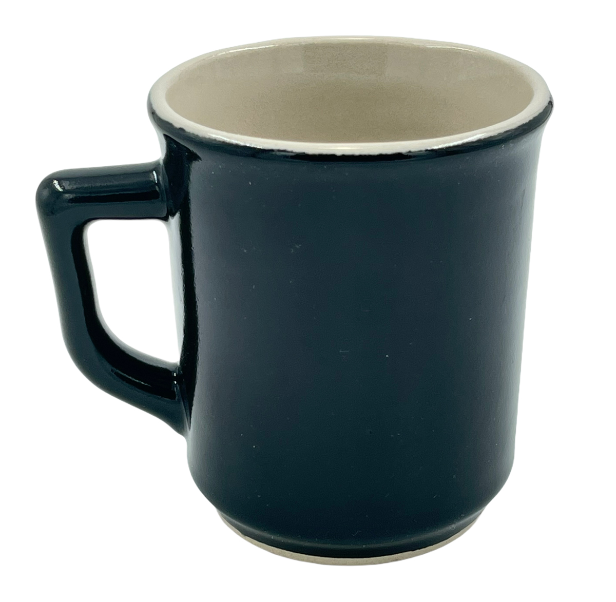 Technique: Mug and handle slip cast, jigger-finished, liner-glazed inside, dip-glazed outside