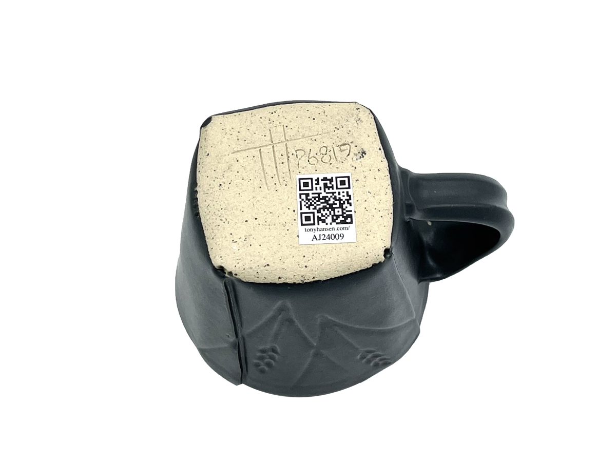These mugs are intended to demonstrate the techniques, recipes and materials I promote on this site. My audience is potters, hobbyists and manufacturers. Each mug described maintains its own permanent page here with detailed physical description as well as information on every detail of how it was made. Since each has links into many areas of this site that provide more detail, researching just one mug could take hours! The "AJxxxx" serial number on any can be searched here.