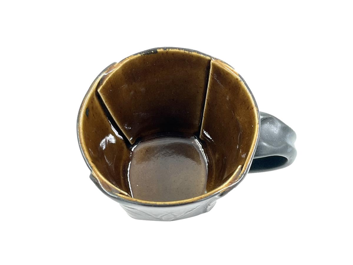 Technique: Hand-rolled, embossed and assembled, liner-glazed inside, dip-glazed outside