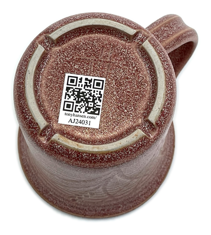 These mugs are intended to demonstrate the techniques, recipes and materials I promote on this site. My audience is potters, hobbyists and manufacturers. Each mug described maintains its own permanent page here with detailed physical description as well as information on every detail of how it was made. Since each has links into many areas of this site that provide more detail, researching just one mug could take hours! The "AJxxxx" serial number on any can be searched here.