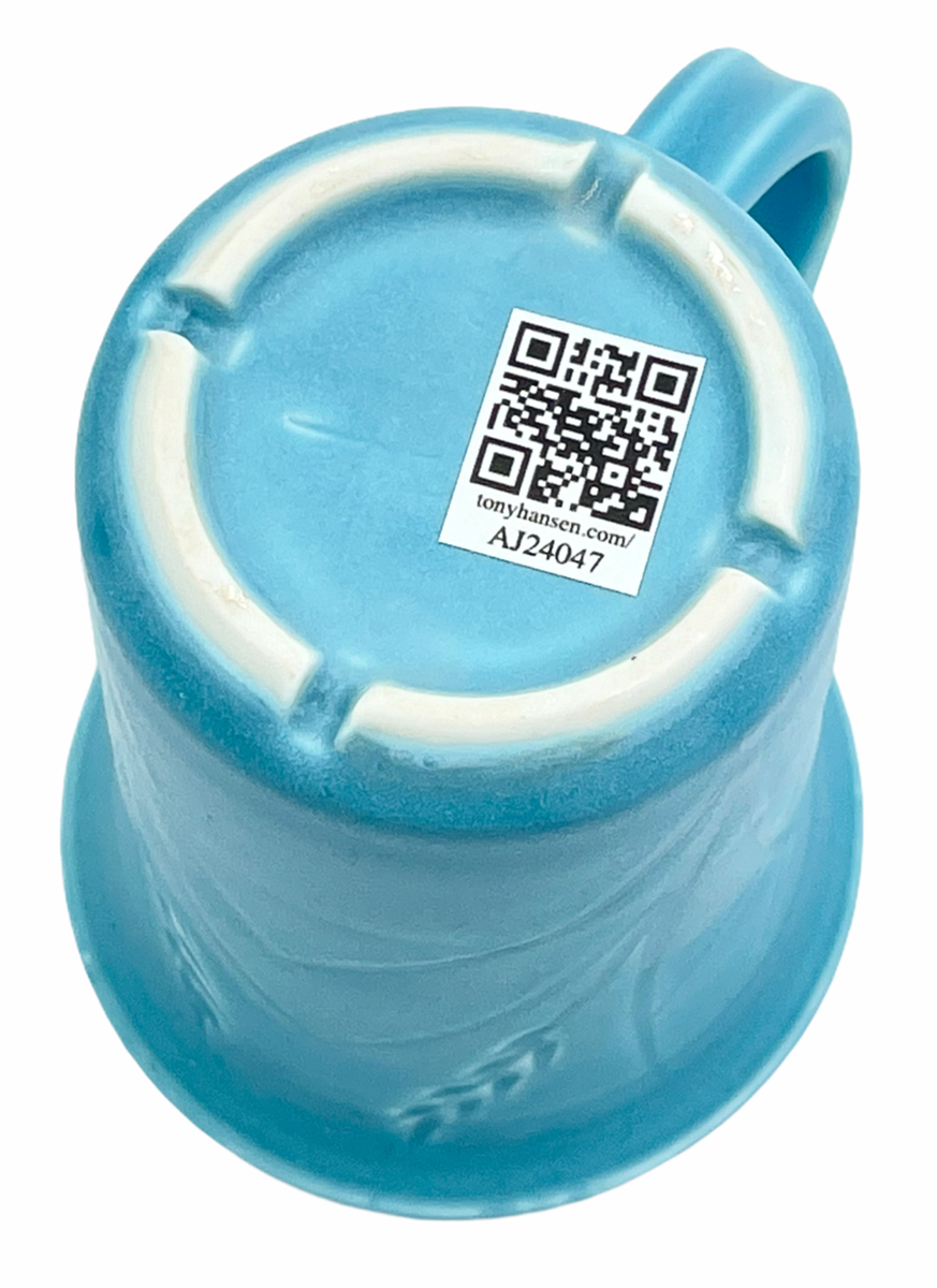 These mugs are intended to demonstrate the techniques, recipes and materials I promote on this site. My audience is potters, hobbyists and manufacturers. Each mug described maintains its own permanent page here with detailed physical description as well as information on every detail of how it was made. Since each has links into many areas of this site that provide more detail, researching just one mug could take hours! The "AJxxxx" serial number on any can be searched here.