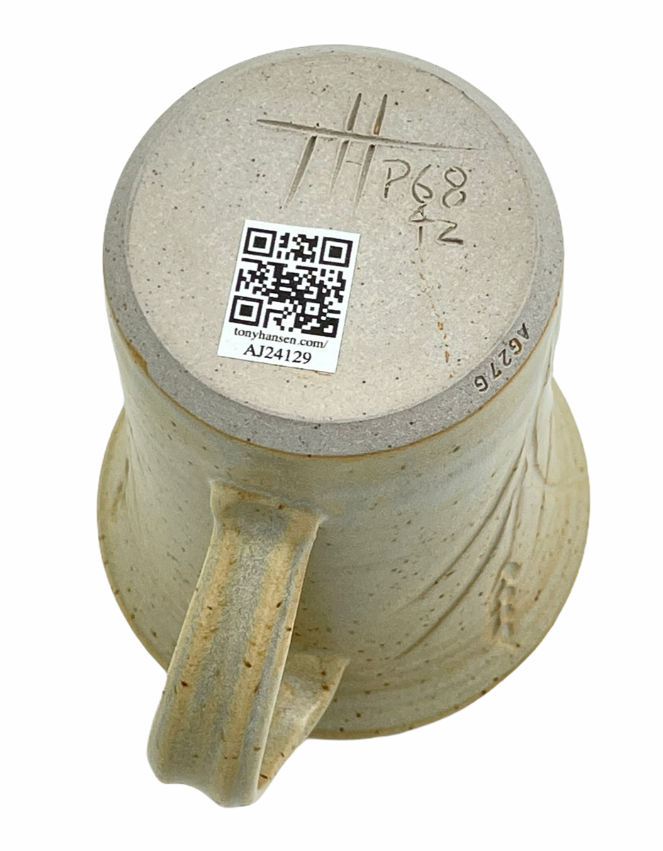 These mugs are intended to demonstrate the techniques, recipes and materials I promote on this site. My audience is potters, hobbyists and manufacturers. Each mug described maintains its own permanent page here with detailed physical description as well as information on every detail of how it was made. Since each has links into many areas of this site that provide more detail, researching just one mug could take hours! The "AJxxxx" serial number on any can be searched here.