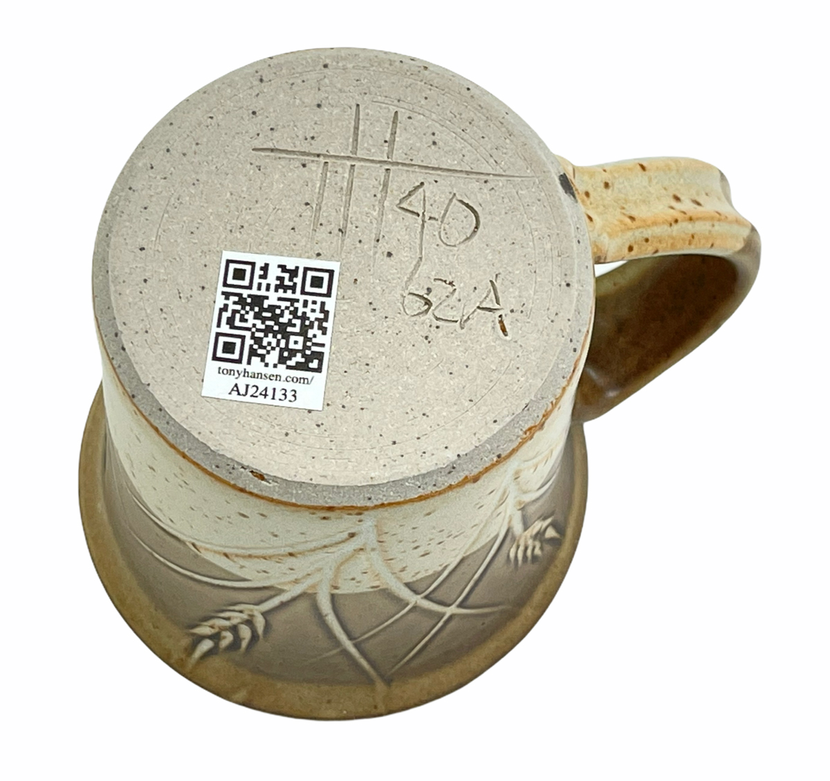 These mugs are intended to demonstrate the techniques, recipes and materials I promote on this site. My audience is potters, hobbyists and manufacturers. Each mug described maintains its own permanent page here with detailed physical description as well as information on every detail of how it was made. Since each has links into many areas of this site that provide more detail, researching just one mug could take hours! The "AJxxxx" serial number on any can be searched here.