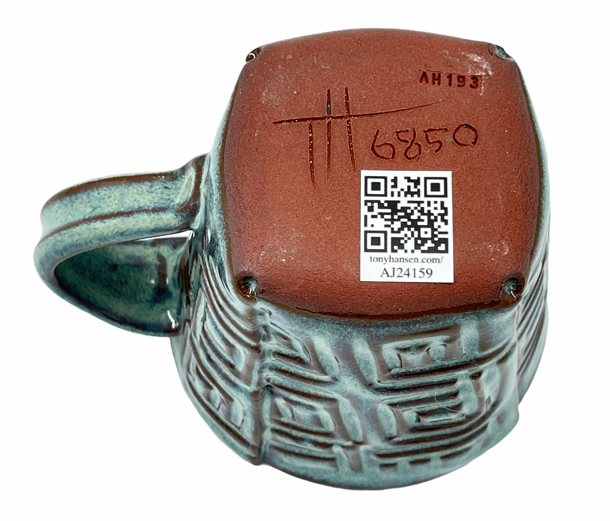 These mugs are intended to demonstrate the techniques, recipes and materials I promote on this site. My audience is potters, hobbyists and manufacturers. Each mug described maintains its own permanent page here with detailed physical description as well as information on every detail of how it was made. Since each has links into many areas of this site that provide more detail, researching just one mug could take hours! The "AJxxxx" serial number on any can be searched here.