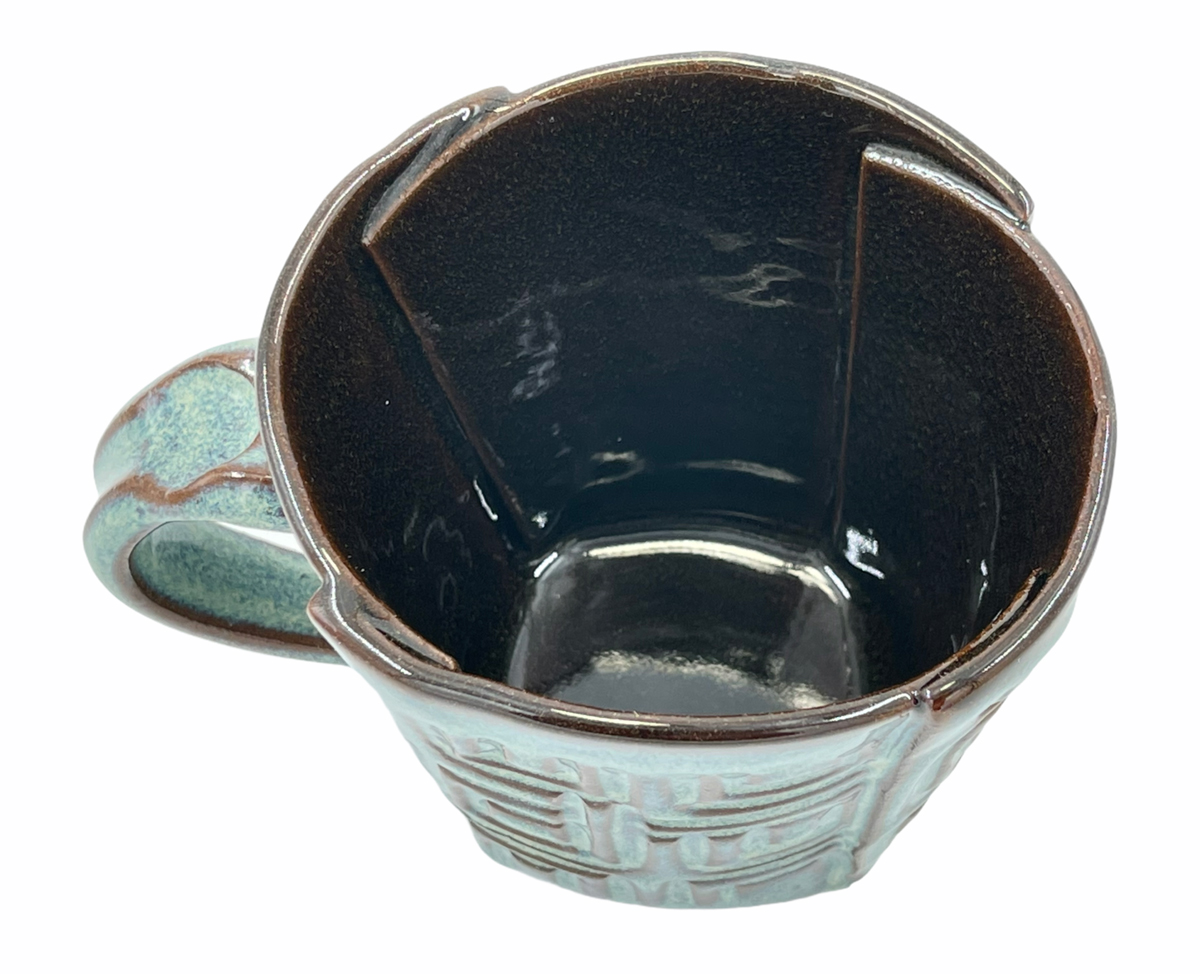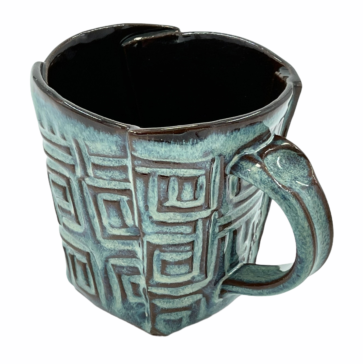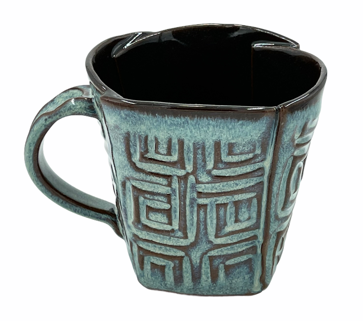 Technique: Hand-rolled, embossed and assembled, liner-glazed inside, dip-glazed outside