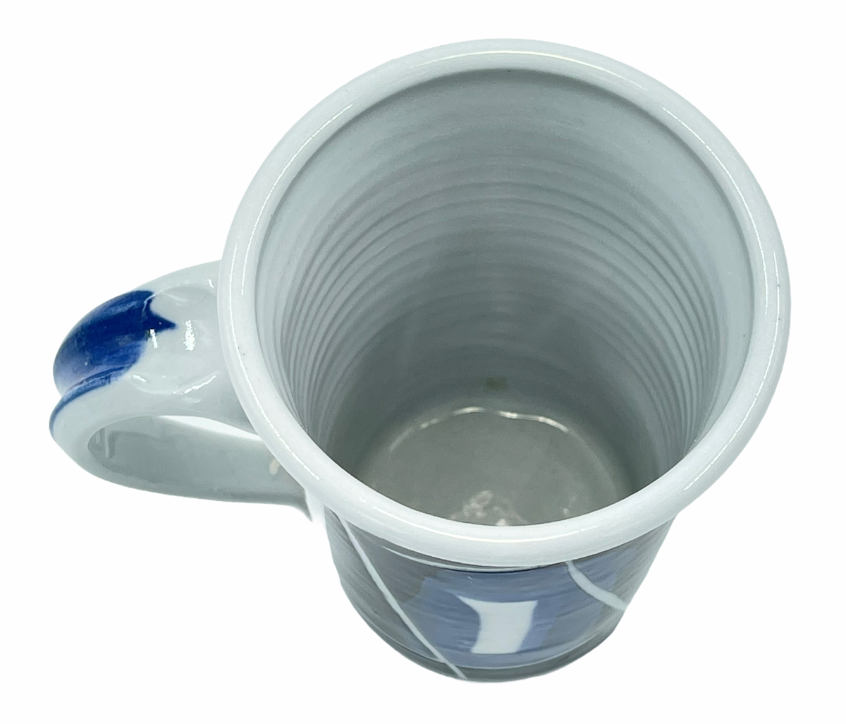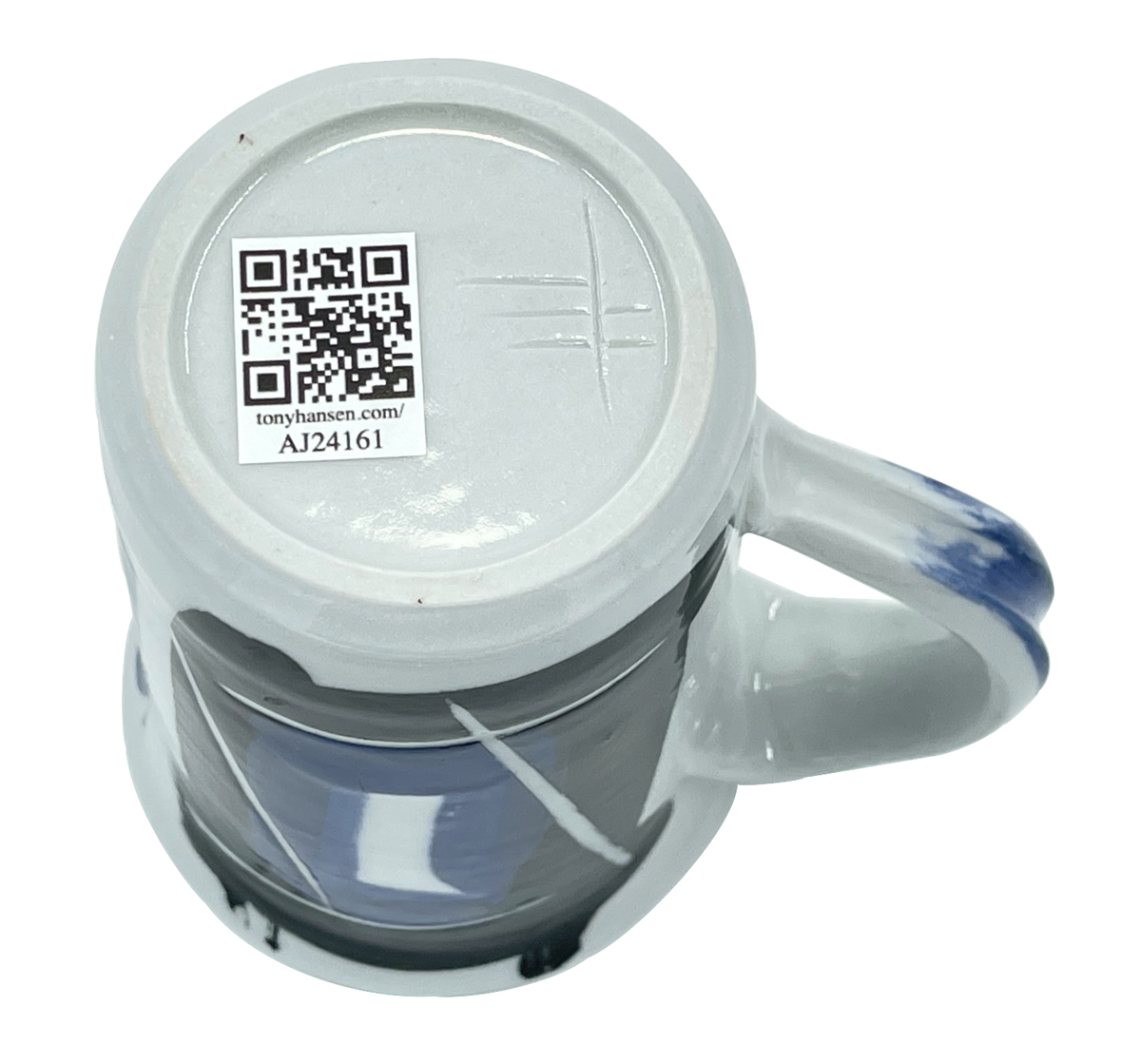 These mugs are intended to demonstrate the techniques, recipes and materials I promote on this site. My audience is potters, hobbyists and manufacturers. Each mug described maintains its own permanent page here with detailed physical description as well as information on every detail of how it was made. Since each has links into many areas of this site that provide more detail, researching just one mug could take hours! The "AJxxxx" serial number on any can be searched here.