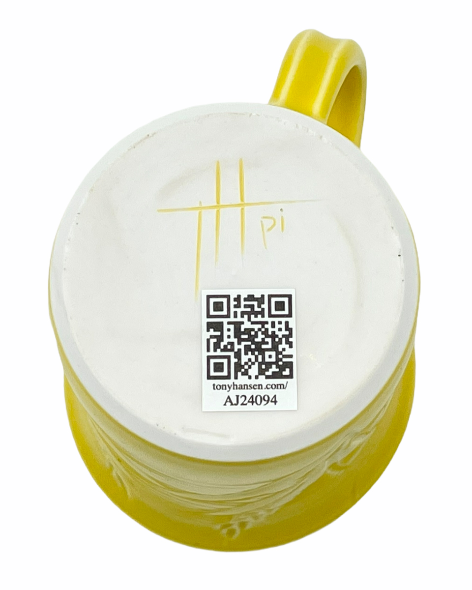 These mugs are intended to demonstrate the techniques, recipes and materials I promote on this site. My audience is potters, hobbyists and manufacturers. Each mug described maintains its own permanent page here with detailed physical description as well as information on every detail of how it was made. Since each has links into many areas of this site that provide more detail, researching just one mug could take hours! The "AJxxxx" serial number on any can be searched here.