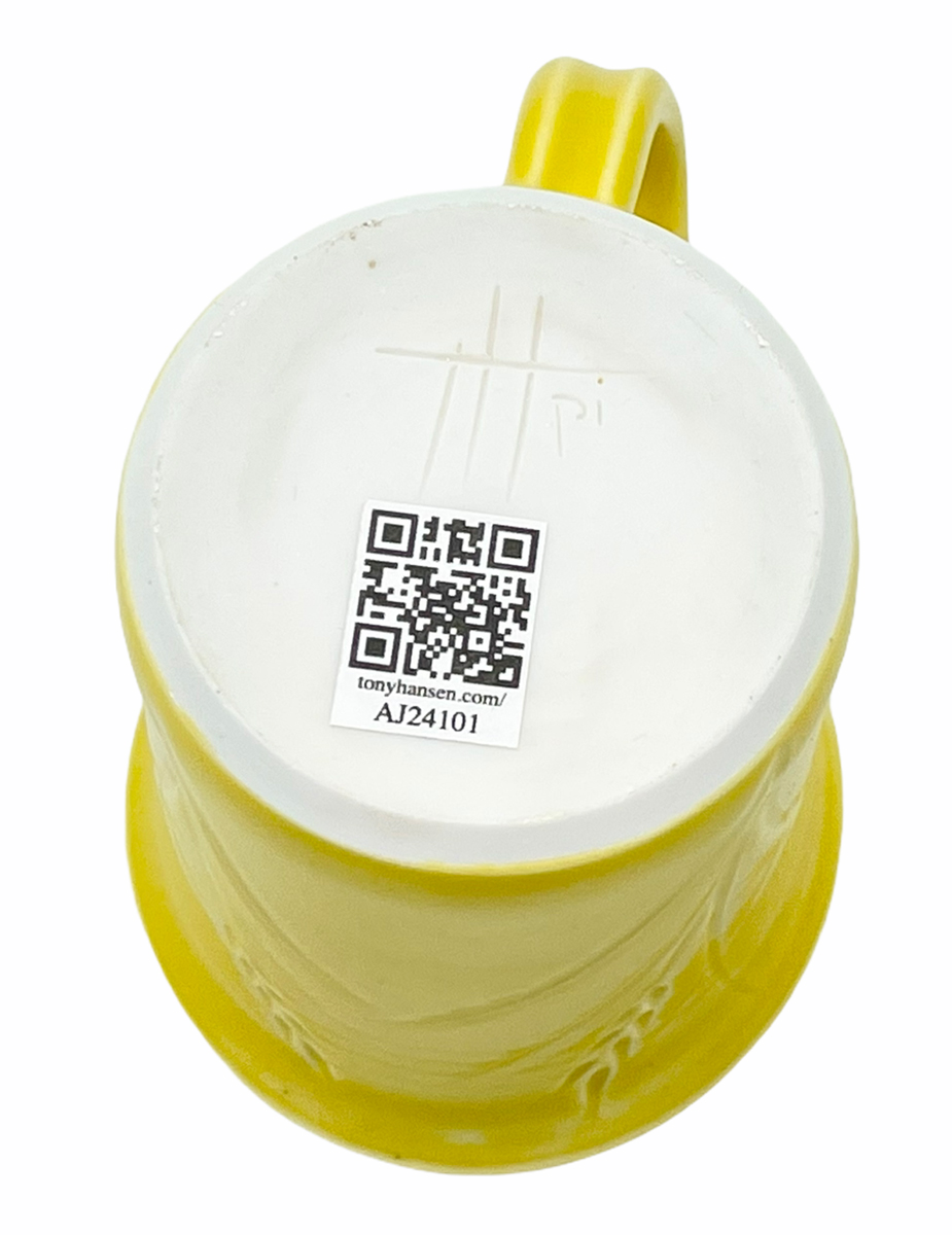 These mugs are intended to demonstrate the techniques, recipes and materials I promote on this site. My audience is potters, hobbyists and manufacturers. Each mug described maintains its own permanent page here with detailed physical description as well as information on every detail of how it was made. Since each has links into many areas of this site that provide more detail, researching just one mug could take hours! The "AJxxxx" serial number on any can be searched here.