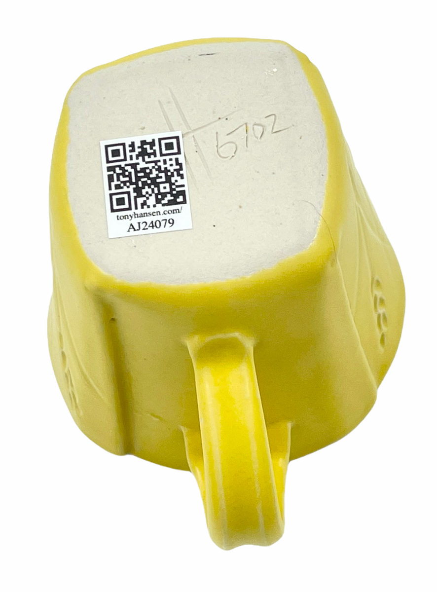 These mugs are intended to demonstrate the techniques, recipes and materials I promote on this site. My audience is potters, hobbyists and manufacturers. Each mug described maintains its own permanent page here with detailed physical description as well as information on every detail of how it was made. Since each has links into many areas of this site that provide more detail, researching just one mug could take hours! The "AJxxxx" serial number on any can be searched here.