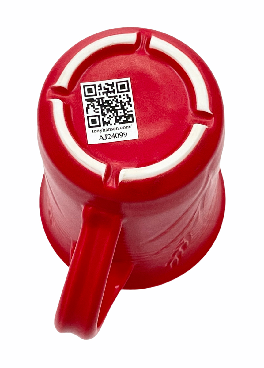 These mugs are intended to demonstrate the techniques, recipes and materials I promote on this site. My audience is potters, hobbyists and manufacturers. Each mug described maintains its own permanent page here with detailed physical description as well as information on every detail of how it was made. Since each has links into many areas of this site that provide more detail, researching just one mug could take hours! The "AJxxxx" serial number on any can be searched here.