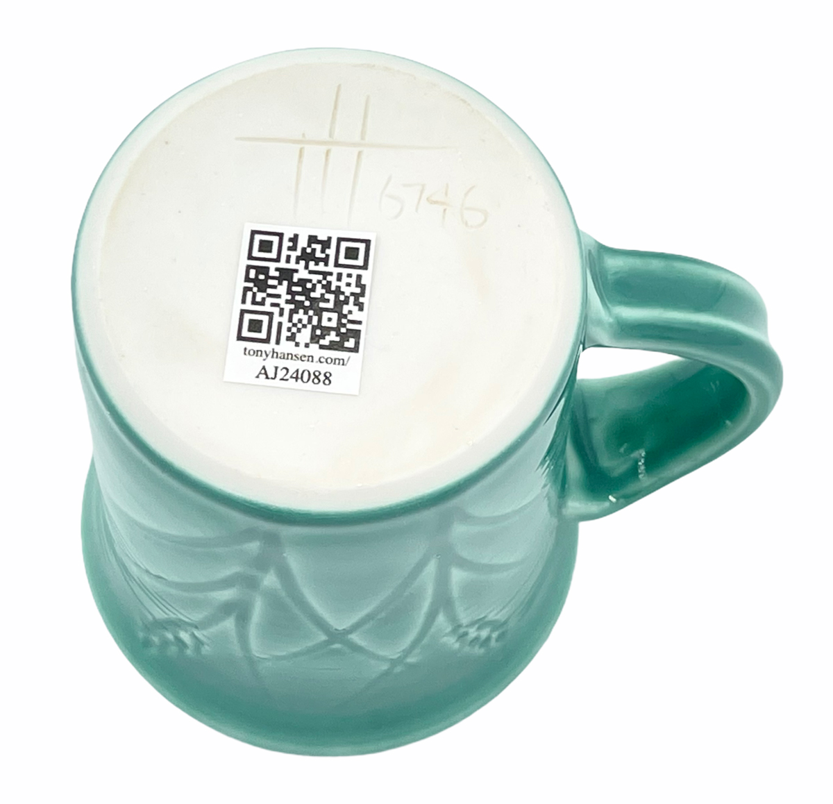 These mugs are intended to demonstrate the techniques, recipes and materials I promote on this site. My audience is potters, hobbyists and manufacturers. Each mug described maintains its own permanent page here with detailed physical description as well as information on every detail of how it was made. Since each has links into many areas of this site that provide more detail, researching just one mug could take hours! The "AJxxxx" serial number on any can be searched here.