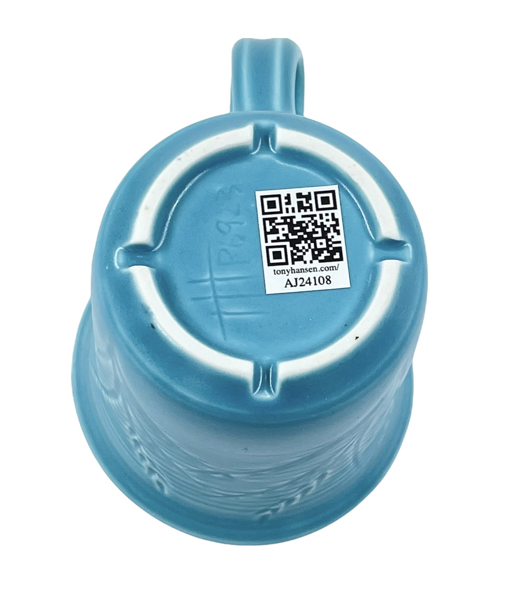 These mugs are intended to demonstrate the techniques, recipes and materials I promote on this site. My audience is potters, hobbyists and manufacturers. Each mug described maintains its own permanent page here with detailed physical description as well as information on every detail of how it was made. Since each has links into many areas of this site that provide more detail, researching just one mug could take hours! The "AJxxxx" serial number on any can be searched here.