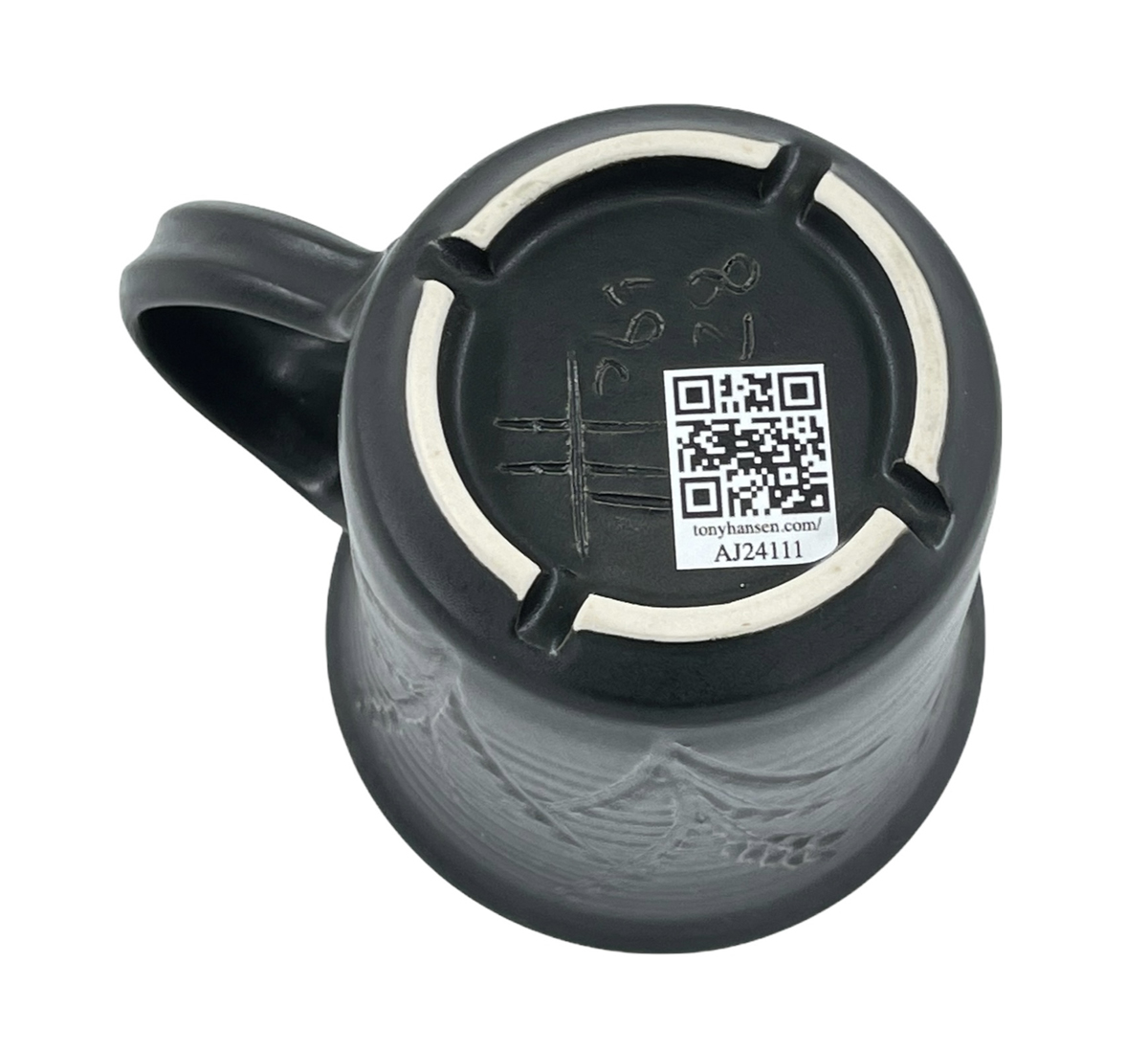 These mugs are intended to demonstrate the techniques, recipes and materials I promote on this site. My audience is potters, hobbyists and manufacturers. Each mug described maintains its own permanent page here with detailed physical description as well as information on every detail of how it was made. Since each has links into many areas of this site that provide more detail, researching just one mug could take hours! The "AJxxxx" serial number on any can be searched here.