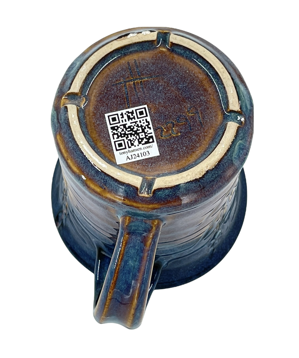 These mugs are intended to demonstrate the techniques, recipes and materials I promote on this site. My audience is potters, hobbyists and manufacturers. Each mug described maintains its own permanent page here with detailed physical description as well as information on every detail of how it was made. Since each has links into many areas of this site that provide more detail, researching just one mug could take hours! The "AJxxxx" serial number on any can be searched here.