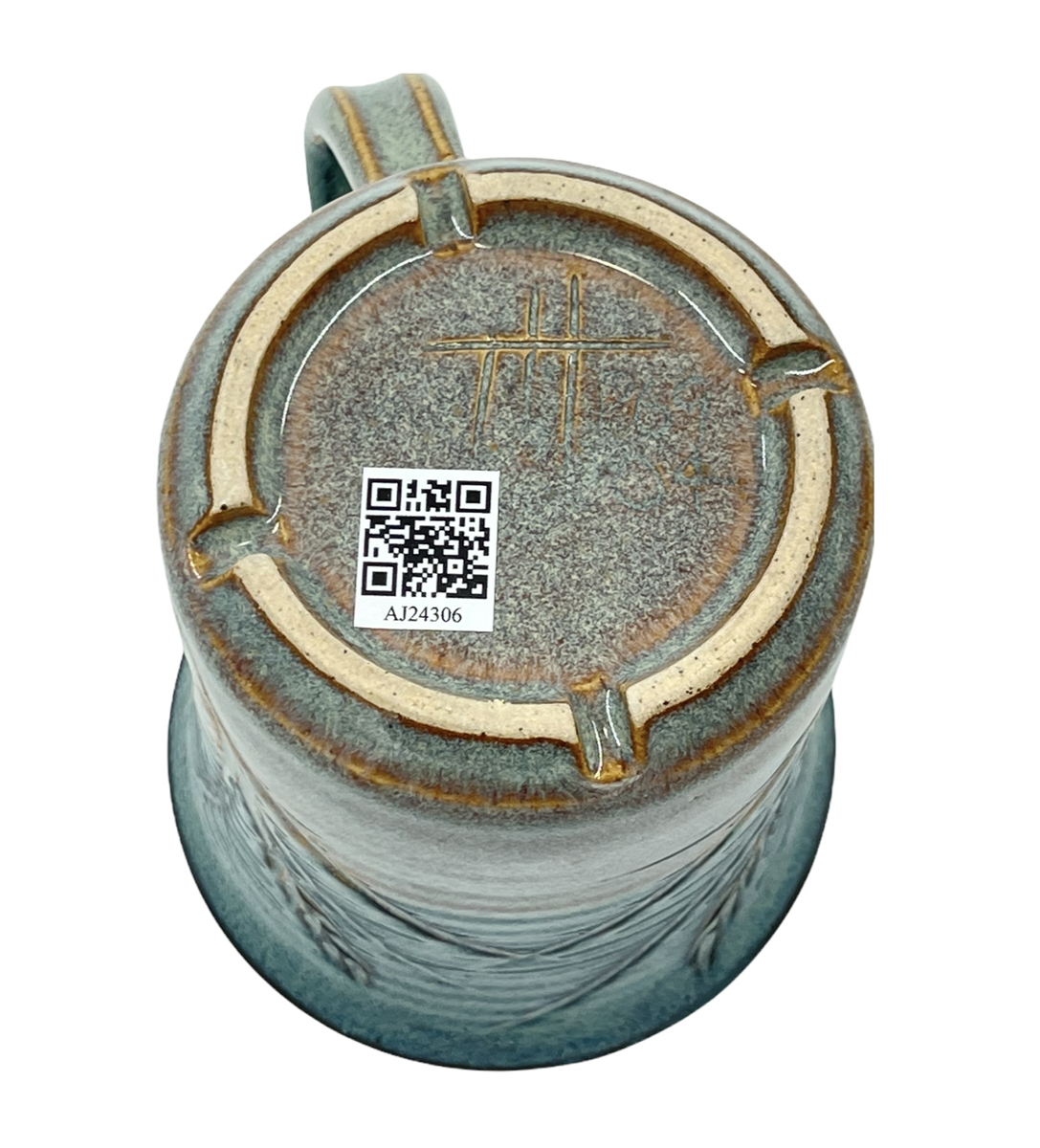 These mugs are intended to demonstrate the techniques, recipes and materials I promote on this site. My audience is potters, hobbyists and manufacturers. Each mug described maintains its own permanent page here with detailed physical description as well as information on every detail of how it was made. Since each has links into many areas of this site that provide more detail, researching just one mug could take hours! The "AJxxxx" serial number on any can be searched here.