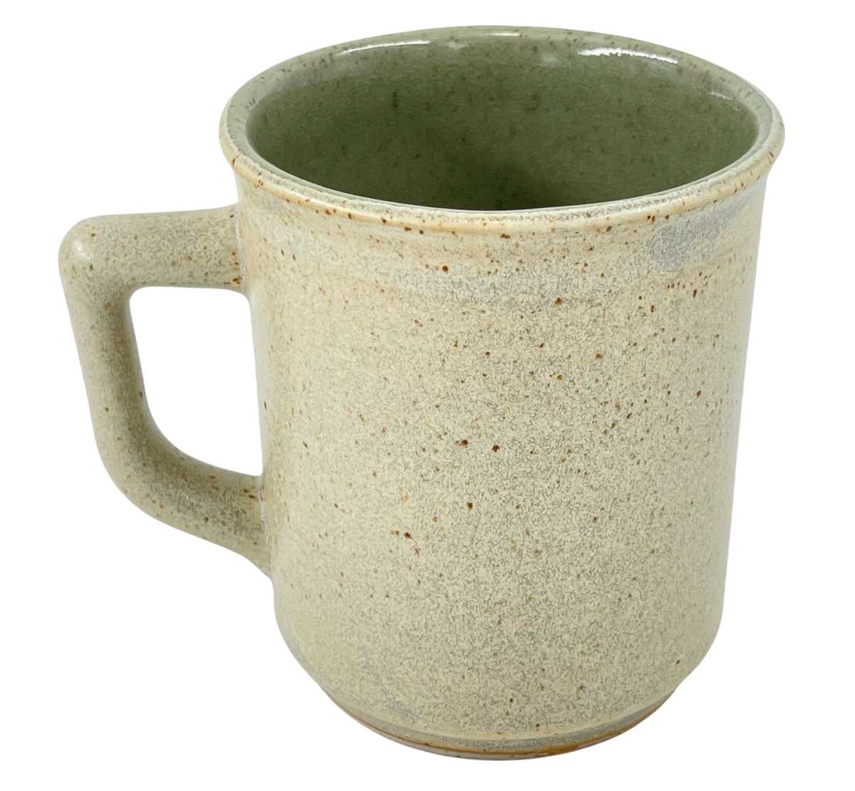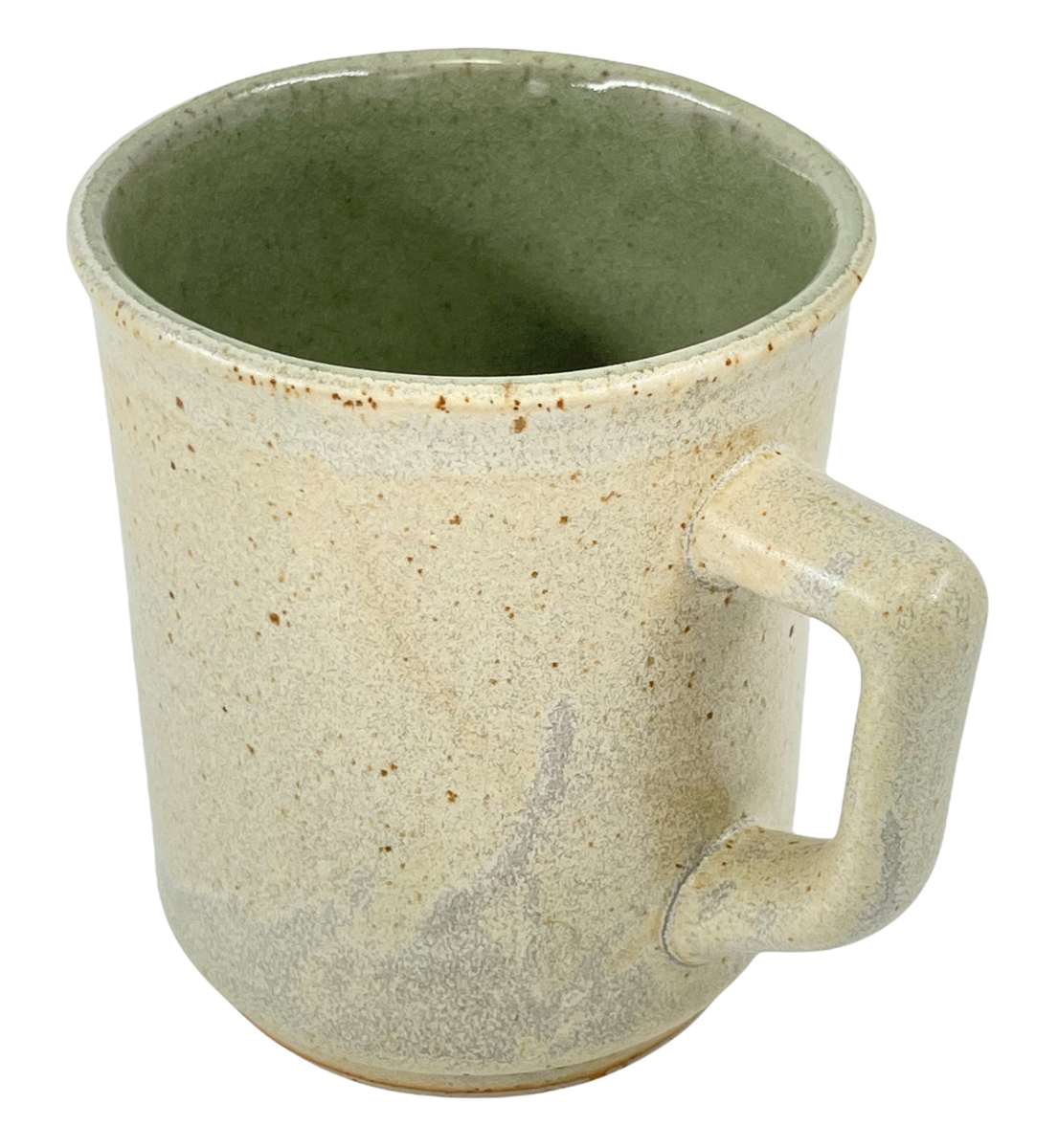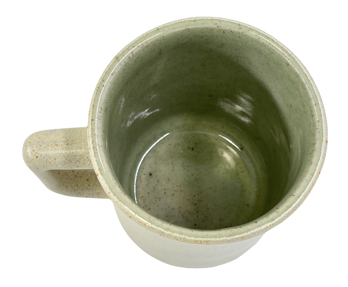Technique: Jiggered, liner-glazed inside, dip-glazed outside, cast handle