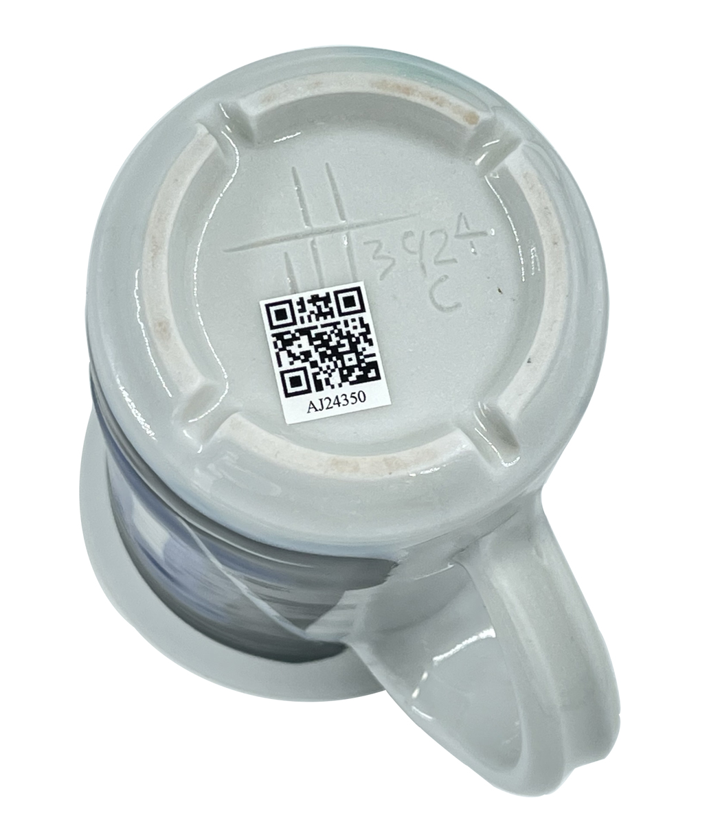 These mugs are intended to demonstrate the techniques, recipes and materials I promote on this site. My audience is potters, hobbyists and manufacturers. Each mug described maintains its own permanent page here with detailed physical description as well as information on every detail of how it was made. Since each has links into many areas of this site that provide more detail, researching just one mug could take hours! The "AJxxxx" serial number on any can be searched here.