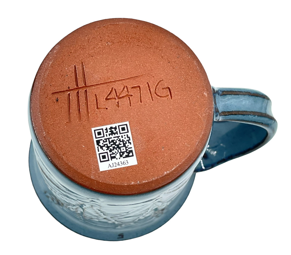 These mugs are intended to demonstrate the techniques, recipes and materials I promote on this site. My audience is potters, hobbyists and manufacturers. Each mug described maintains its own permanent page here with detailed physical description as well as information on every detail of how it was made. Since each has links into many areas of this site that provide more detail, researching just one mug could take hours! The "AJxxxx" serial number on any can be searched here.