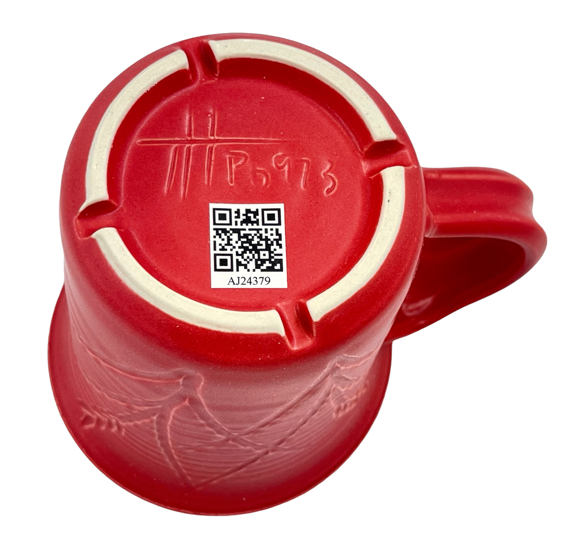 These mugs are intended to demonstrate the techniques, recipes and materials I promote on this site. My audience is potters, hobbyists and manufacturers. Each mug described maintains its own permanent page here with detailed physical description as well as information on every detail of how it was made. Since each has links into many areas of this site that provide more detail, researching just one mug could take hours! The "AJxxxx" serial number on any can be searched here.