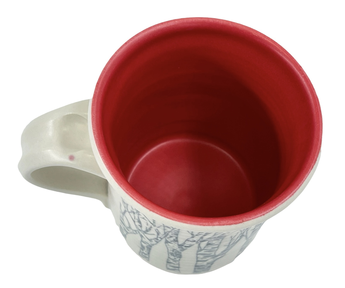 Technique: Thrown, transfers applied at leather hard, liner-glazed inside, dip-glazed outside