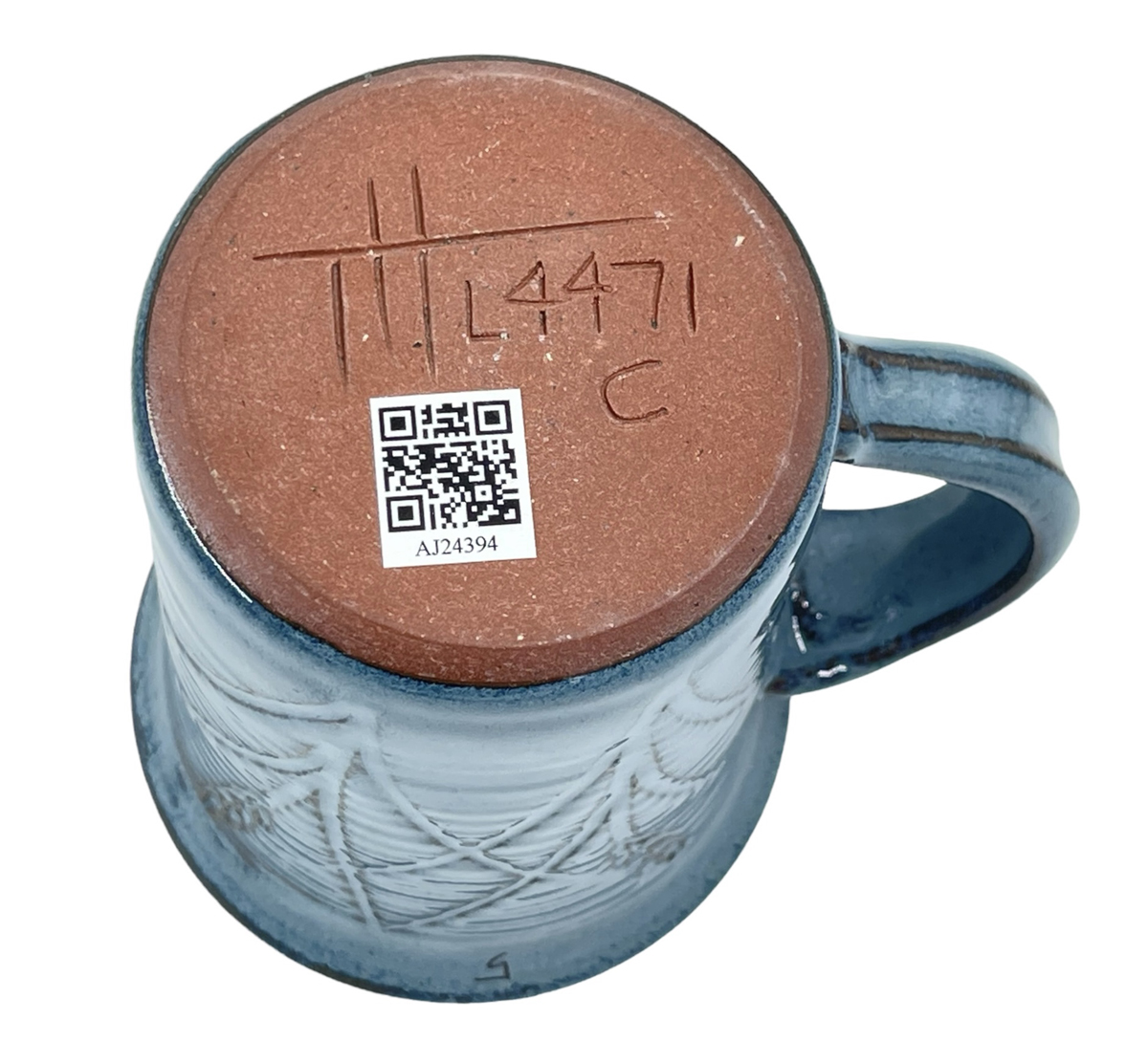 These mugs are intended to demonstrate the techniques, recipes and materials I promote on this site. My audience is potters, hobbyists and manufacturers. Each mug described maintains its own permanent page here with detailed physical description as well as information on every detail of how it was made. Since each has links into many areas of this site that provide more detail, researching just one mug could take hours! The "AJxxxx" serial number on any can be searched here.
