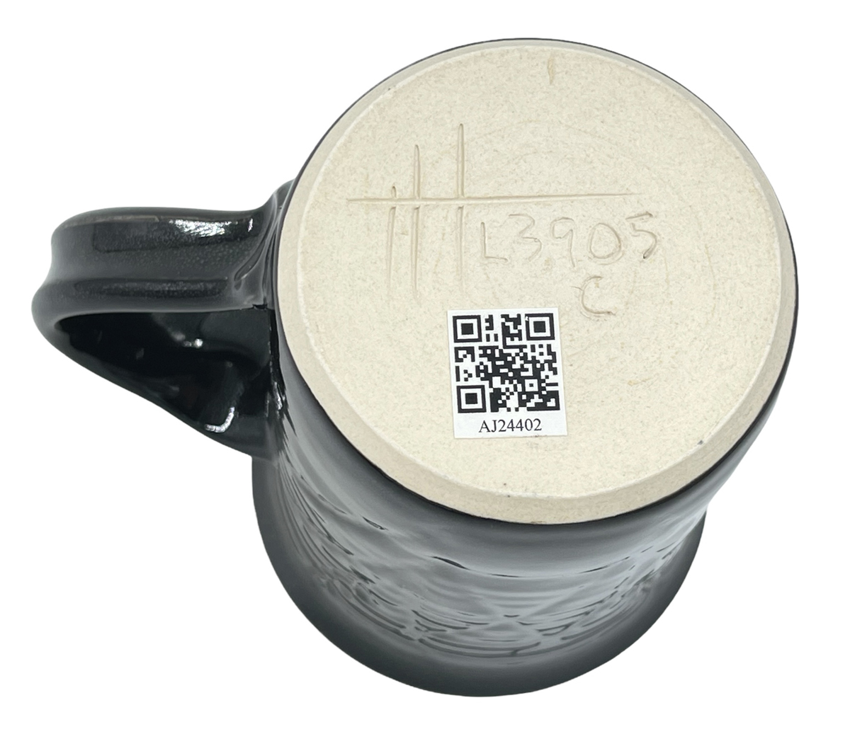 These mugs are intended to demonstrate the techniques, recipes and materials I promote on this site. My audience is potters, hobbyists and manufacturers. Each mug described maintains its own permanent page here with detailed physical description as well as information on every detail of how it was made. Since each has links into many areas of this site that provide more detail, researching just one mug could take hours! The "AJxxxx" serial number on any can be searched here.