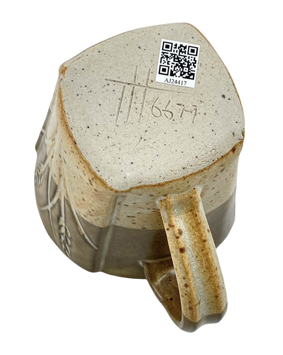 These mugs are intended to demonstrate the techniques, recipes and materials I promote on this site. My audience is potters, hobbyists and manufacturers. Each mug described maintains its own permanent page here with detailed physical description as well as information on every detail of how it was made. Since each has links into many areas of this site that provide more detail, researching just one mug could take hours! The "AJxxxx" serial number on any can be searched here.