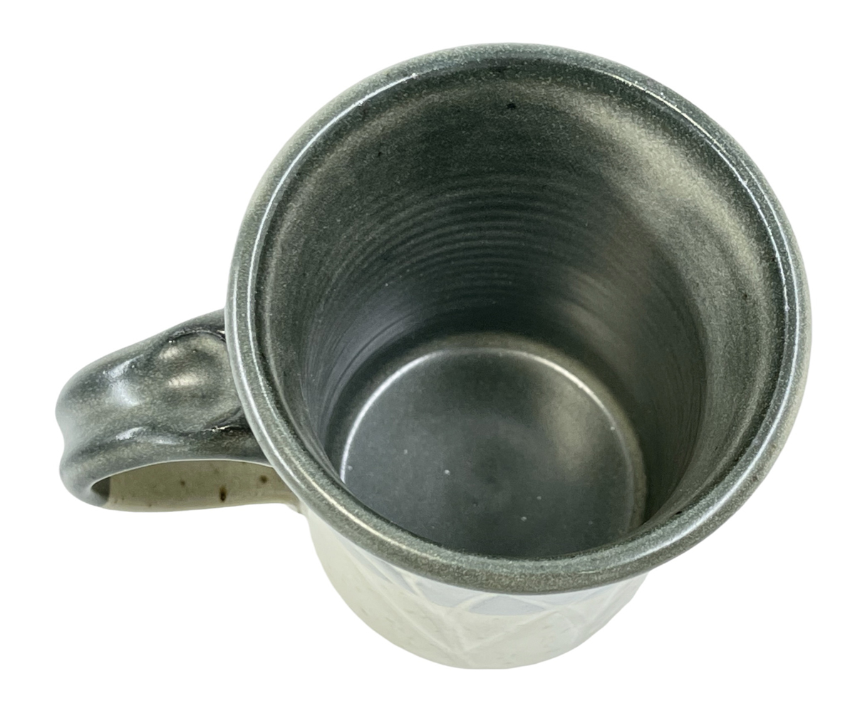 These mugs are intended to demonstrate the techniques, recipes and materials I promote on this site. My audience is potters, hobbyists and manufacturers. Each mug described maintains its own permanent page here with detailed physical description as well as information on every detail of how it was made. Since each has links into many areas of this site that provide more detail, researching just one mug could take hours! The "AJxxxx" serial number on any can be searched here.