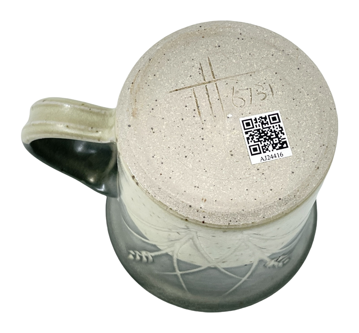 These mugs are intended to demonstrate the techniques, recipes and materials I promote on this site. My audience is potters, hobbyists and manufacturers. Each mug described maintains its own permanent page here with detailed physical description as well as information on every detail of how it was made. Since each has links into many areas of this site that provide more detail, researching just one mug could take hours! The "AJxxxx" serial number on any can be searched here.