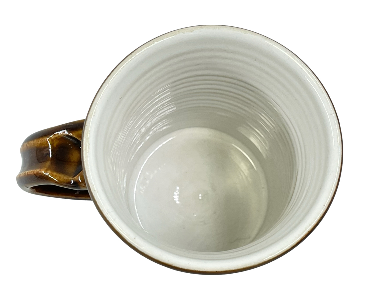These mugs are intended to demonstrate the techniques, recipes and materials I promote on this site. My audience is potters, hobbyists and manufacturers. Each mug described maintains its own permanent page here with detailed physical description as well as information on every detail of how it was made. Since each has links into many areas of this site that provide more detail, researching just one mug could take hours! The "AJxxxx" serial number on any can be searched here.