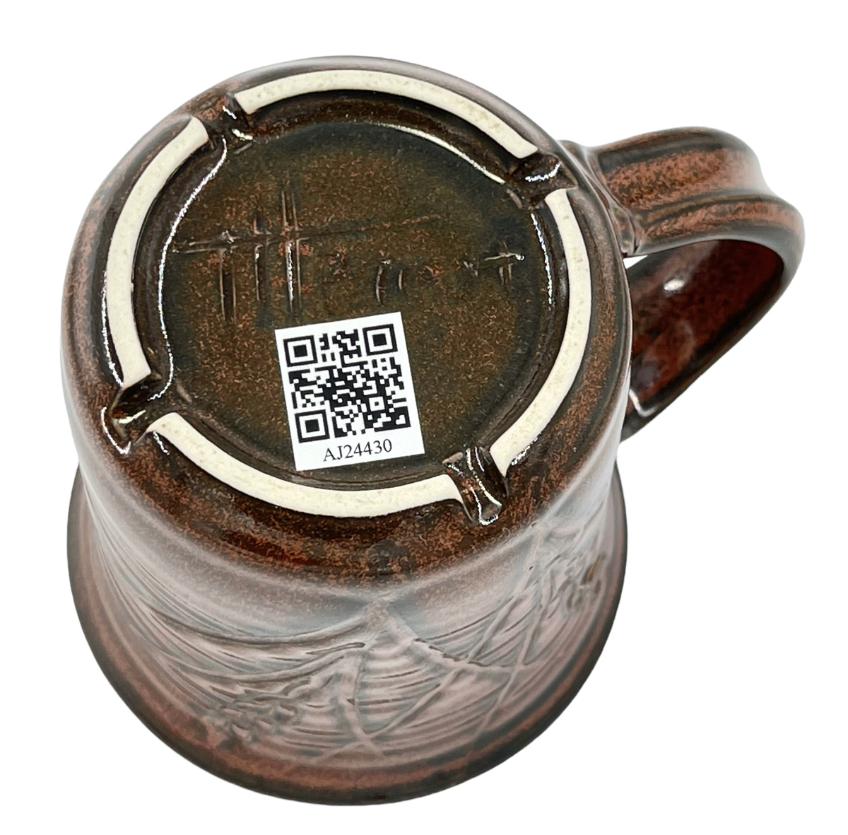 These mugs are intended to demonstrate the techniques, recipes and materials I promote on this site. My audience is potters, hobbyists and manufacturers. Each mug described maintains its own permanent page here with detailed physical description as well as information on every detail of how it was made. Since each has links into many areas of this site that provide more detail, researching just one mug could take hours! The "AJxxxx" serial number on any can be searched here.