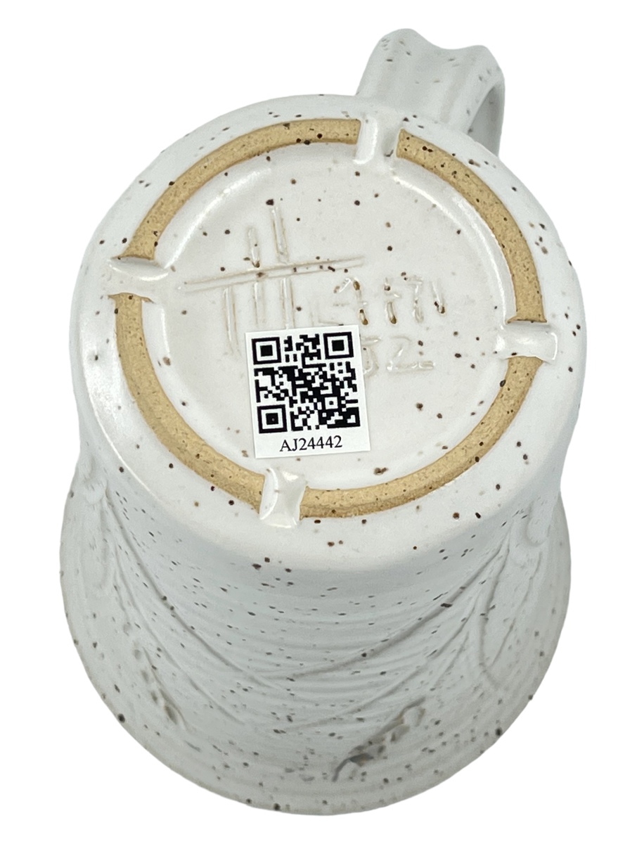 These mugs are intended to demonstrate the techniques, recipes and materials I promote on this site. My audience is potters, hobbyists and manufacturers. Each mug described maintains its own permanent page here with detailed physical description as well as information on every detail of how it was made. Since each has links into many areas of this site that provide more detail, researching just one mug could take hours! The "AJxxxx" serial number on any can be searched here.