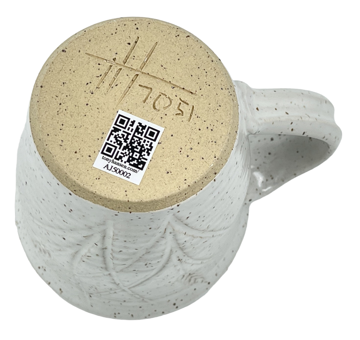 These mugs are intended to demonstrate the techniques, recipes and materials I promote on this site. My audience is potters, hobbyists and manufacturers. Each mug described maintains its own permanent page here with detailed physical description as well as information on every detail of how it was made. Since each has links into many areas of this site that provide more detail, researching just one mug could take hours! The "AJxxxx" serial number on any can be searched here.